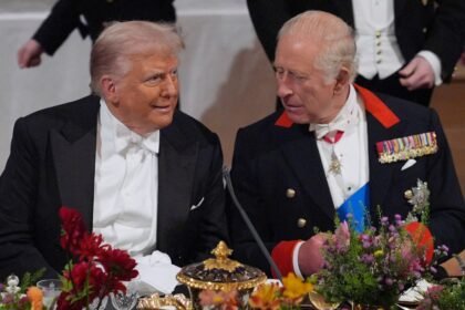 U.S. President Donald Trump and King Charles III during a state banquet…