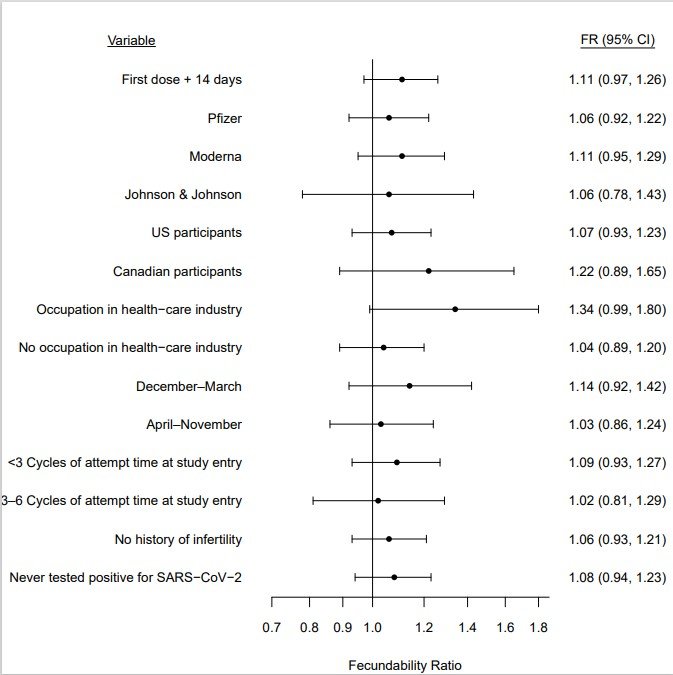 Lead author Dr. Amelia Wesselink, epidemiologist at Boston University School of Public Health, and colleagues analyzed survey data on COVID-19 vaccination and infection, and fecundability, among female and male participants in the BUSPH-based Pregnancy Study Online (PRESTO), an ongoing NIH-funded study that enrolls women trying to conceive, and follows them from preconception through six months after delivery. Participants included 2,126 women in the US and Canada who provided information on sociodemographics, lifestyle, medical factors, and characteristics of their partners from December 2020 to September 2021, and the participants were followed in the study through November 2021.